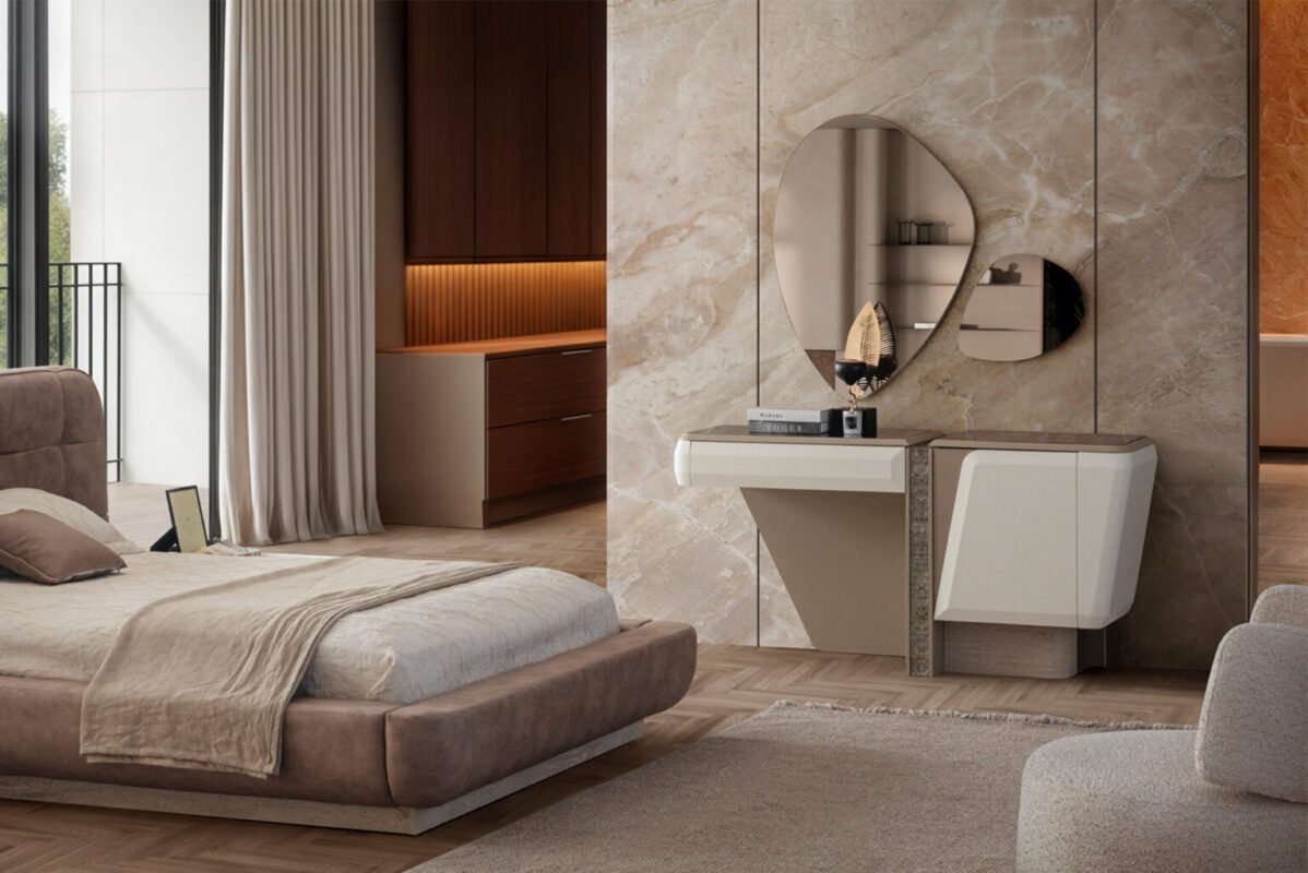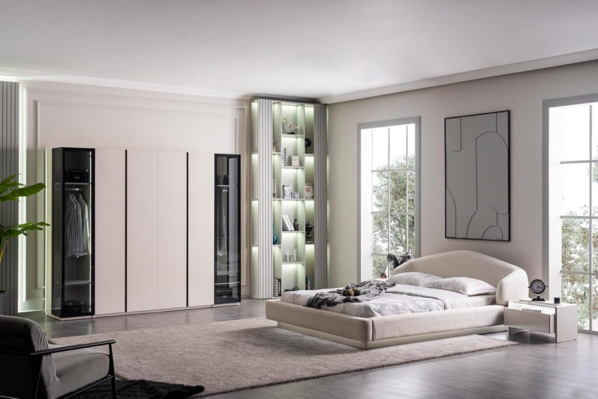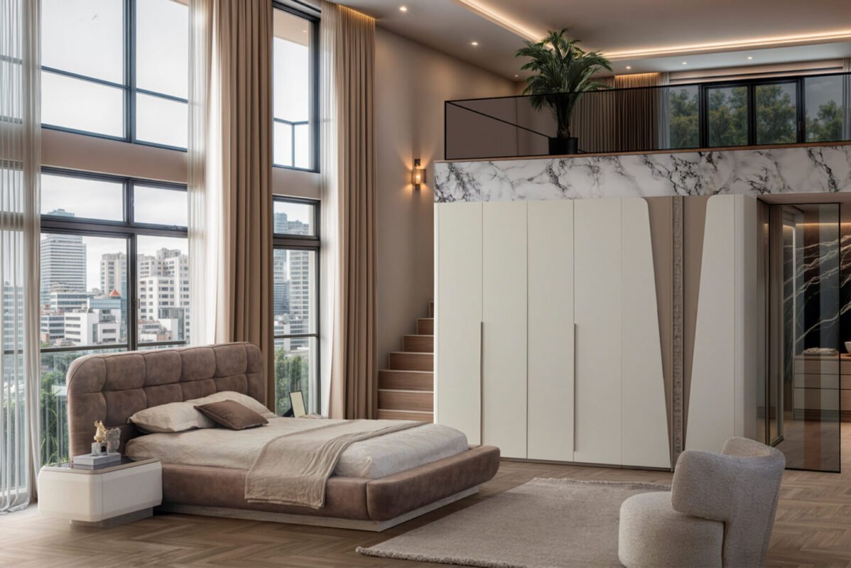 غرفة نوم تتكون من دولاب جرار 2 ضلفة واحدة بالكامل مرايا عالية الجودة بطقم جرار عالي الجودة وسرير 160سم برفرفه خلف كل كوميد 50سم مما يجعل اجمالي مقاس دهره 260سم به تنجيد سفنج عالي الجودة وخامة التنجيد جلد طبيعي و2 كومود كل كومود به 2 درج سوفت كلوز وتسريحة ببرواز مرايا عالية الجودة بها 3 ادراج سوفت كلوز وضلفة تاتش قوايم زان تقشيط زان بالكامل |